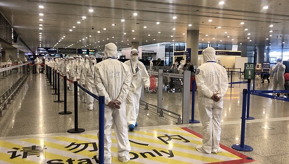 旅客下飞机之前,海关人员会登临重点地区航班检疫、筛查体温、查验信息。下飞机走过专用廊桥后,旅客将100%接受流行病学调查,并在联检大厅接受健康申明卡初筛、测温、正式递交健康申明卡。