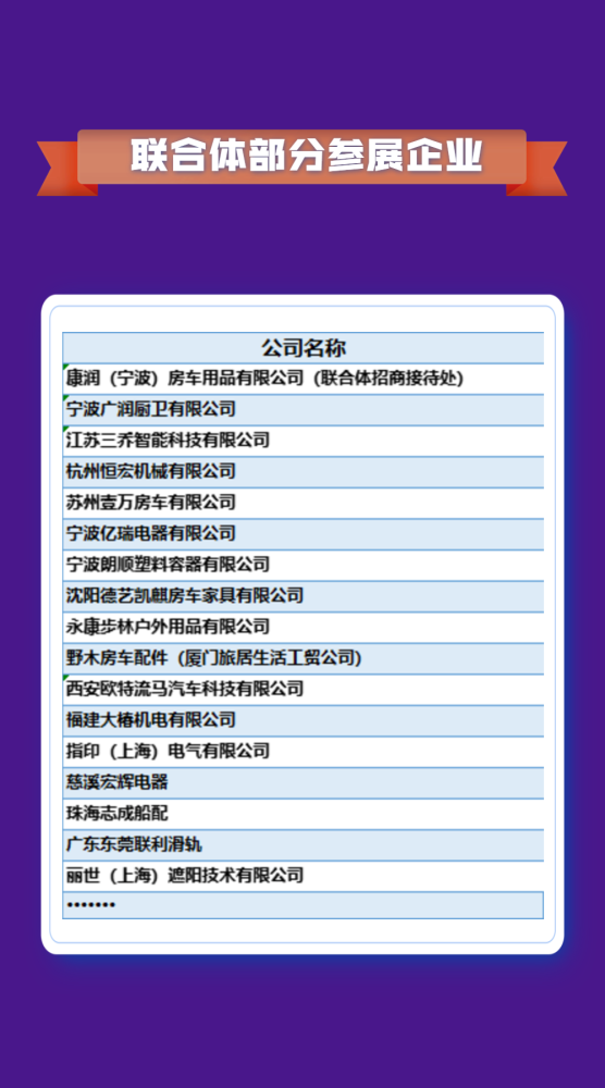 联合体目前经营范围涉及房车所有配件以及户外用品。目前已经有很多不同区域的外商跟联合体签订了合作协议。中国房车配件及户外用品产业联合体在行业的重要地位也在愈发显现,同时联合体将继往开来为中国房车配件及户外用品做出应有的贡献!