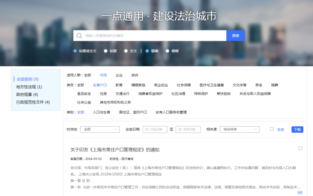 此外,“上海城市法规全书”的用户体验也在不断优化。上线一个月后,系统便增加了“多重检索”“中英文对照”“附件提示”等功能。针对部分市政协委员提出的进一步提升标识度、便捷性和个性化服务的建议,市委依法治市办也在不断摸索和完善,让系统真正成为市民学法用法的重要平台。